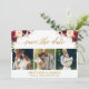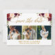 Caligrafia Moderna, Watercolor Burgundy Floral, 3 Anúncio do Noivado Fotográfico Salvar A Data Dourada