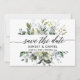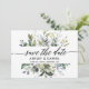 Manuscrito de Caligrafia Moderna Manuscrito Elegante Aquarela Verde Botânica Anúncio de Noivado de Casamento Salvar O Cartão de Data inclui folhas de eucalipto, folhagem botânica verde, folhas azuis empoeiradas e outro belo verde botânico.