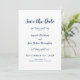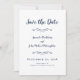 Cartões salve a data elegantes, delicados, em lindo azul marinho e branco são clássicos, formais e eternos. A design romântica sem bordas permite que você escolha facilmente a forma de papel para o seu anúncio de noivado. Duas decorativas florescem cada uma contendo um solteiro cardíaco delicadamente com o nome da noiva e do noivo. Para obter resultados ideais, pule as linhas e capitalize como na amostra. Envie perguntas ou solicitações personalizadas para invitationsuites@gmail.com