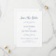 Elegantes e delicados cartões de aviso de data de casamento em um lindo azul empoeirado e branco são clássicos, formais e atemporais. O design romântico sem bordas permite que você escolha facilmente o formato do papel para o anúncio de seu noivado. Dois floreios decorativos, cada um contendo um único coração, envolvem delicadamente o nome da noiva e do noivo. Para obter resultados ótimos, pule as linhas e use letras maiúsculas como no exemplo.