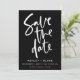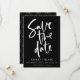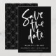 Preto e Branco Script Moderno Simples Caligrafia manuscrita Casamento Salve as Cartões de Data Personalize com seu texto para torná-lo Exclusivamente Vindo com padrão geométrico no verso Você pode remover completamente o padrão ou nos pedir para alterar ou remover o padrão gratuitamente