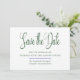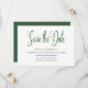 Elegante e caçador de eterno verde e branco design. Salvar a Data é escrito em belo texto de script. Seus nomes, data do casamento e local a seguir. Você pode incluir uma mensagem adicional no verso.