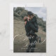 Calligraphy Foto Personalizada Casamento Salve A Data. Um design elegante e clássico de 'Salve A Data' de casamento com texto de caligrafia fluída em branco. Personalizável com sua foto e detalhes.