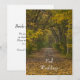 Anuncie a data do seu casamento em setembro, outubro ou novembro com o anúncio de Salve a Data do Caminho de Vida de Casamento de Outono. Este cartão sazonal de casamento outonal personalizado apresenta uma fotografia da natureza pintada digitalmente de uma estrada rural coberta com folhas douradas e marrons.