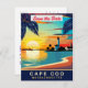 Convite de casamento para salvar a data de Cape Cod, cartão postal de viagem. Farol na costa com pôr do sol na paisagem.
