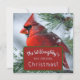 Celebre a festa de Natal da sua família, casamento de inverno ou Memória RIP com este modelo fácil de atualizar. Basta preencher o nome, idade, data, hora, local da festa e quaisquer notas de RSVP ou outras informações. Altere de "os Willoughby estão organizando o Natal!" para "Chandler e Addison estão se casando!". Disponível em muitos desenhos para todas as ocasiões. O pássaro cardinal vermelho se empoleira em um galho de pinheiro coberto de neve.