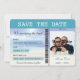 Estes cartões salve a data de embarque de casamento são uma combinação perfeita com os convites, RSVP, bandas de barriga e postagem. A foto de fundo é do Caribe, mas qualquer casamento de destino tropical funcionaria lindamente com esse estilo de casamento, exceto o cartão de data. Modelo fácil de usar, permite que você edite rapidamente com suas próprias informações.