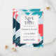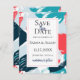 Abstrato moderno pincelada em coral brilhante Caribe, turquesa e azul, salve o cartão de encontro. Personalize o estilo, a cor e o tamanho da fonte do texto.