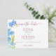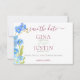 Este design inclui um buquê que flui de cor-de-rosa-escuro, pêssego e cravos amarelos e azul esqueça-me dos pontos. Simples e doce, esta design é perfeita para casamentos informais a semissformais. Este cartão faz parte do conjunto de cartas "Carnação e esqueçam-me", criado pela imprensa "Simply Farmhouse".