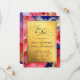 Cartão luxuoso vermelho e roxo de Save the Date com um acento de ouro rico em redemoinhos de cor líquida. No topo da arte está um modelo fácil de editar; ao qual os nomes dos noivos podem ser adicionados. Em seguida, substitua o texto do modelo pela data, hora e local do casamento. Arte abstrata original da artista internacional Pauline Benjes. Veja nossas coleções para mais designs lindos. Arte Abstrata de Casamento Regal Gold Save the Date.