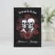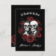 Convite de casamento do casal de crânios esqueleto gótico com rosas até que a morte nos separe