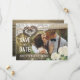 Casamento de estilo russo no campo Salve os Modelos de Cartão com fotos de data - Carninho de ferradura antiga de Casal com nó de Arco de corda e cadarço branco, Flor de Hydrangea, Luzes de corda e Lata de entupimento no fundo da madeira do velho celeiro. Um Design perfeito para o seu grande dia. Todo estilo de texto, cores, tamanhos podem ser modificados para ajustado das suas necessidades!