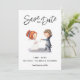 Anúncio de casamento save the date ilustrado fofo e moderno com uma ilustração de uma noiva e um noivo dançando. Ilustrado e projetado por Patricia Alvarez.
