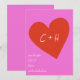 Anuncie seu dia especial com este Cartão de Save the Date de Iniciais de Coração Ousado, apresentando um coração vermelho vibrante em um fundo rosa brilhante, personalizado com suas iniciais. Com tipografia moderna e divertida, este cartão define o tom para uma celebração divertida e romântica. Inclua a data do seu casamento, local e site para manter seus convidados informados e animados. Perfeito para casais que amam designs ousados e coloridos, este cartão é uma maneira única de compartilhar sua história de amor e garantir que todos salvem a data!