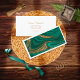 Este conjunto de design de casamento, com seu padrão abstrato de ondulações fluídas e veias de ouro brilhante, traz à mente formações rochosas impressionantes e gemas cintilantes. A paleta de cores em tons de joia em tons de verde esmeralda adiciona ao apelo. O cartão de "Save the Date" mostrado aqui tem tudo isso com um layout que o destaca da multidão. Adicione facilmente os detalhes do seu evento usando o modelo fornecido. Pesquise ID903 para ver outras opções de cores e peças coordenadas para esta coleção de casamento única.