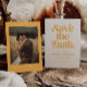 Retroativo e elegante salve o cartão de data com fonte boho que diz "salve a data" em amarelo. Você pode adicionar uma foto atrás.
