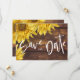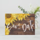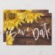 Rústica Madeira Girassol Amarelo Brilhante Casamento Salve a Data. O design tem um fundo de madeira castanho-rústico com girassóis amarelos brilhantes e o texto escrito em bonito texto. O verso do cartão tem a data e os nomes da noiva e do noivo. Este casamento rústico bonito, salvo os cartões de data são perfeitos para anunciar o seu casamento com o grande casamento outono ou com o tema do país. Esses cartões de anúncio de casamento podem ser facilmente personalizados mudando os nomes da noiva e do noivo e a data do casamento. Para mais personalizações, contacte-me em mypaperlove2021@gmail.com