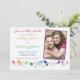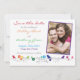 O texto e a foto de casamento sobre esta divertida, caprichosa e única foto de casamento do arco-íris em aves (passarinhos, pombinhos), flores e folhas (vinhas), fotos de casamento floral, exceto o convite para a data, é totalmente personalizável. Uma escolha excelente para aqueles que têm um casamento com o tema do arco-íris. Para alterar o texto e a foto, use a opção personalizar. Para alterações de texto ou foto mais abrangentes, incluindo alterações na fonte, cor da fonte, tamanho da fonte, tamanho da foto, posicionamento da foto ou posicionamento do texto, use a opção personalizar. Você também pode experimentá-lo em diferentes tipos de papel. Você poderia usar este casamento a cores do arco-íris para salvar o cartão de data para qualquer outra ocasião especial, assim como com mudanças no texto. Seria um belo convite fotográfico para uma variedade de ocasiões especiais.