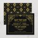 O rico preto e dourado se combinam neste ousado cartão de 'salve a data' art déco, apresentando uma intricada moldura dourada com roletas e um verso com azulejo damasco dourado para uma estética verdadeiramente opulenta, inspirada em Gatsby. A tipografia serifada estruturada e a tipografia cursiva reforçam o clima formal e glamoroso. Personalize com seus nomes, data do casamento e detalhes do local.