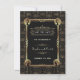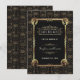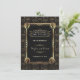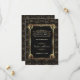Design Glamuroso Art Déco estilo Grande Gatsby. Apresenta cantos delicados e únicos de garotas Flapper em falso ouro Art Déco Nouveau, ornamentos e divisores, fontes vintage deslumbrantes, um padrão Art Déco dourado desbotado em fundo preto. Use a ferramenta Personalizar para adicionar suas informações. Para itens correspondentes, visite minha Coleção Única Art Déco dos Anos 20.