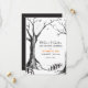 Este simples design gótico monocromático apresenta árvores rabiscadas, morcegos e uma teia de aranha com um toque de cor laranja. A parte posterior do cartão é um design de moldura branca em um fundo preto. Itens de casamento coordenados estão disponíveis (vendidos separadamente). Itens correspondentes podem ser encontrados em nossa coleção 'Noite das Bruxas'.