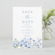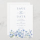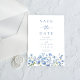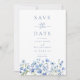 Reserve A Data Casamento Azul com Derrame Floral Elegante