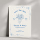 Anuncie seu dia com este vaso de flores brancas desenhado à mão Salve a data, com rabiscos brincalhões, rabiscos de arco e um encantador roteiro de escrita manual. Acentuado em tons azuis suaves, esta design peculiar e criativa é perfeita para casais planejando uma celebração divertida e iluminada. Uma escolha única para casamentos casuais, histórias de amor modernas e vibrações alegres.