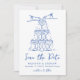 Anuncie seu dia especial em estilo com a Torre de Champanhe Whimsical Salve a Data. Este cartão elegante apresenta uma ilustração de uma linha azul-chic de óculos de champanhe empilhados, com champanhe a descer graciosamente, colocado sobre um fundo branco. "Salvar a data" é exibido elegantemente em um script manuscrito azul, adicionando um toque pessoal e na moda. Abaixo, seus nomes, data do casamento e local são mostrados, fazer este cartão exclusivamente seu. Impresso na sua escolha de papel, esta salva a data é perfeita para dar o tom de sofisticação e celebração ao seu casamento. Peça agora e faça uma impressão duradoura com a Torre de Champanhe Whimsical Salve a Data.