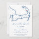 Ponha o tom para o casamento da sua frota com este marinho azul moderno Salve a data com um mapa elegante de Cape Cod na frente e uma foto personalizável no verso. Perfeito para casamentos no Chequessett Club, no WellFrota Preserve Hall, ou The Holden Inn, este estilo de design emparelha com conveniência, oferecendo endereçamento de envelope gratuito. Anuncie seu dia especial em charme costeiro sem esforço! Trabalho de arte por Designs de Mapa Costeiro.