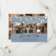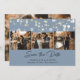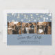 Elegante personalizou cartões salve a data de fotos de casamentos azuis empoeirados com um título de roteiro moderno. Nosso casamento salvou a data com uma colagem de fotos de 3 imagens contra um fundo azul empoeirado, enfeitado com luzes de cordas na frente e uma foto na parte de trás. Personalize facilmente este azul empoeirado salve o cartão de data com suas imagens e detalhes do casamento. Para pedidos personalizados, envie-nos uma mensagem através do bate-papo Zazzle.