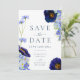 Reserve A Data Casamento Azul Floral Elegante Salva A Data