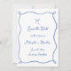 Casamento Azul Francês Arco Desenhado à Mão Caprichoso Salve a Data com uma moldura de fita ondulada e fonte estilo caligrafia. Adicione detalhes extras ao verso.