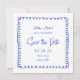 Casamento Azul Quadrado Francês Desenho À Mão Salvar A Data
