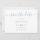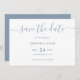 Anuncie sua festa de casamento azul empoeirada com esses cartões salve a data minimalistas, mas elegantes. Personalizar facilmente online. Itens correspondentes disponíveis para complementar este casamento azul empoeirado salve o cartão de data com uma fonte moderna de script.
