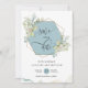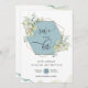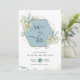 Anuncie sua data de casamento com este elegante casamento, salve o cartão de data com lindos e modernos hexágonos azuis de névoa com elegante cor d'água, folhagem Eucalyptus, bela Salve a frase da data na caligrafia moderna escrita à mão e delicadas manchas de aquarelas nas bordas superior e inferior. Manchas de aquarelas e folhagem verde numa mistura única de tons verdes, azuis, beges e amarelos bronzeados. O mesmo design também está disponível com hexágono em branco, verde e beige. Parte da nossa coleção "Elegante Verde Eucalyptus Wedding and Events" com uma variedade de produtos coordenadores disponíveis.