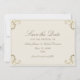 Casamento elegante creme e barroco-ouro exceto cartão de data com ouro ornamentado floresce, caligrafia clássica e monograma personalizado no verso. Perfeito para casamentos formais e luxuosos, este design eterno o ajuda a anunciar seu grande dia em estilo sofisticado. Os convidados vão adorar os detalhes do barroco real e o toque personalizado do monograma, fazer que seja uma peça de papelaria digna de ser guardada.