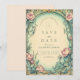 Mistura encantadora de vintage e elegância botânica, essa design apresenta rosas pinceladas suaves entrelaçadas com folhas verdes sábias e delicados gradientes azuis. Enquadrado em curvas de ouro e marfim ornamentado, o convite evoca uma atmosfera de jardim de conto de fadas com uma clássica reviravolta de Art Nouveau, perfeita para uma celebração romântica e eterno de casamento.
