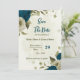 Um belo casamento romântico salve a data do convite com azul-lacre e flores bege e e algumas folhas. PARA MAIS PRODUTOS CORRESPONDENTES, clique na coleção acima ou entre em contato comigo