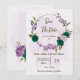 Um belo casamento romântico salve a data do convite com flores esmeraldas verdes e roxas e algumas folhas. PARA MAIS PRODUTOS CORRESPONDENTES, clique na coleção acima ou entre em contato comigo