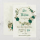 Um belo casamento romântico salve a data do convite com flores verdes esmeraldas e beige e algumas folhas. PARA MAIS PRODUTOS CORRESPONDENTES, clique na coleção acima ou entre em contato comigo