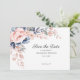 Casamento floral rosa elegante salve o cartão de data que você pode personalizar facilmente com seus detalhes clicando no botão "Personalizar". Apresenta a tipografia popular moderna com texto de script a preto sobre fundo branco DICA: produtos correspondentes disponíveis abaixo para sua conveniência