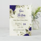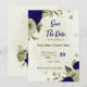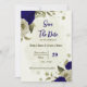 Um belo casamento romântico salve o convite de data com flores azuis reais e beige e algumas folhas. PARA MAIS PRODUTOS CORRESPONDENTES, clique na coleção acima ou entre em contato comigo
