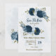 Um belo casamento romântico salve a data do convite com flores azuis-claras e azuis-marinhos e algumas folhas. PARA MAIS PRODUTOS CORRESPONDENTES, clique na coleção acima ou entre em contato comigo