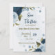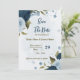 Um belo casamento romântico salve a data do convite com flores azuis-claras e azuis-marinhos e algumas folhas. PARA MAIS PRODUTOS CORRESPONDENTES, clique na coleção acima ou entre em contato comigo