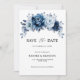 Cartão elegante de aviso de casamento com tema azul esverdeado / naval, apresentando um buquê elegante de flores de rosa azul esverdeado, naval, ardósia e folhas de eucalipto azul. Por favor, entre em contato comigo para qualquer ajuda na personalização ou se você precisar de qualquer outro produto com este design.