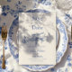 Um clássico design azul e branco inspirado pela safra Chinoiserie e pelo Torre de Jouy impressões. Apresenta coroas botânicas desenhadas à mão, delicados motivos florais e detalhes do estilo de tinta suave. O layout simétrico e as intrincadas fronteiras evocam elegância do eterno com uma sensação romântica e herdeira - perfeita para ocasiões refinadas e temas tradicionais.
