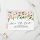 Casamento botânico floral Elegante Blush cor-de-rosa/primavera de pêssego salve o cartão de data com um buquê de rosas de aquarela pastel macio, peonias e hífenes em tons de rosa-pincel, pêssego e creme com folhas botânicas verdes e folhas de eucalipto. Uma escolha moderna de design, perfeita para primavera e sábio de verão, blush, matrizes com temas cor-de-rosa.Por favor, encontre mais designs e variações na minha loja de "blisswedingpaperie". E fique à vontade para me contactar para mais personalizações ou itens correspondentes.