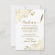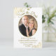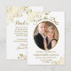 Estas belas cartas são uma forma excelente de deixar seus amigos e família saberem salvar a data do seu próximo casamento. Eles apresentam um design de ouro e branco com sua foto em um quadro em forma de oval cercado por fraldas de folha de alumínio ouro e letras de rico com seus nomes, data de casamento e local. O verso tem um gráfico bonito de "lápis nós in" com espaço para uma nota que pode incluir um site onde seus convidados podem obter mais informações.