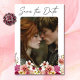 Nosso elegante casamento salve o cartão de data com sua foto favorita com um buquê marcante de flores silvestres de verão em rosa-pincel, magenta, creme e amarelo com verde-luxuoso, é uma obra-prima moderna. Esta design é uma mistura impressionante de elegância moderna e romance eterno. Criado pela imprensa simplesmente de farmácia.
