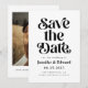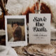 Retroativo e elegante salve o cartão de data com fonte boho que diz "salve a data" em branco sobre fundo branco. Você pode adicionar uma foto atrás.